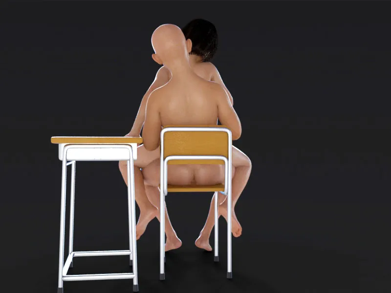 このポーズは、椅子に腰かけた男性の上に女性が背を向けて跨り、背面座位で挿入されている構図です。